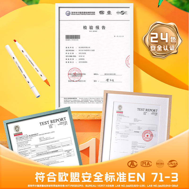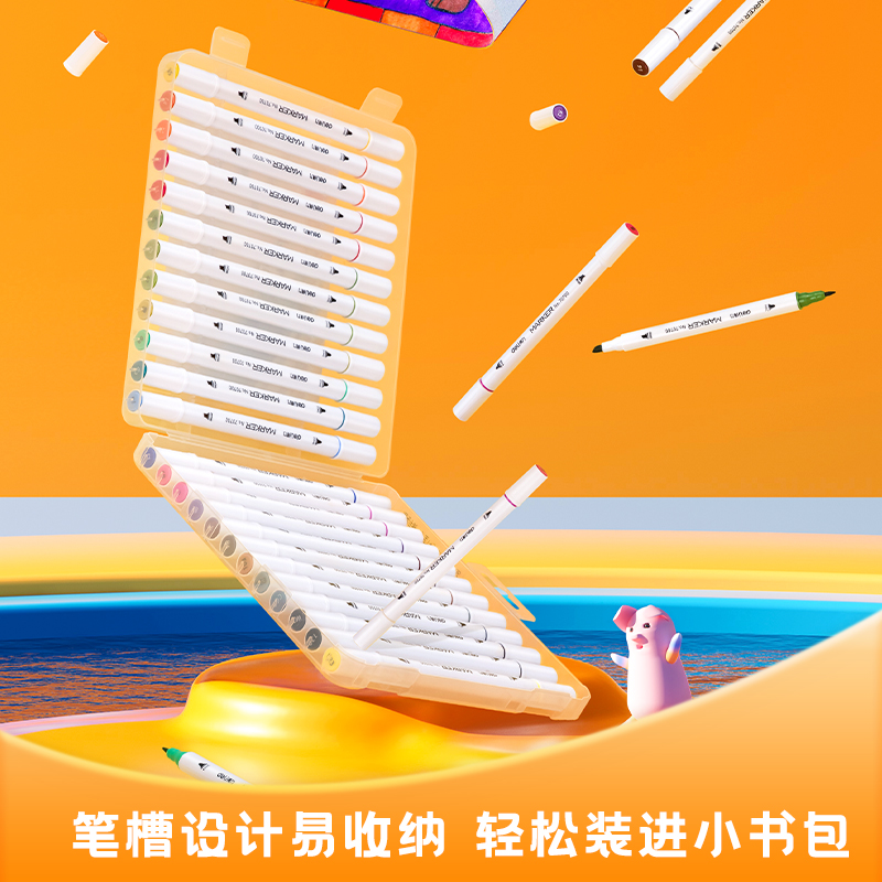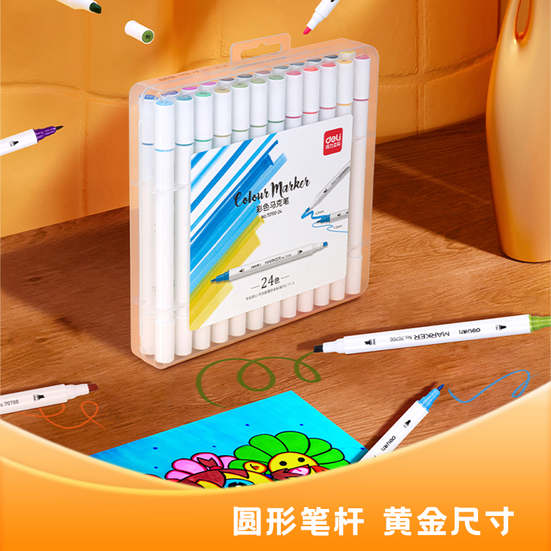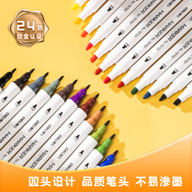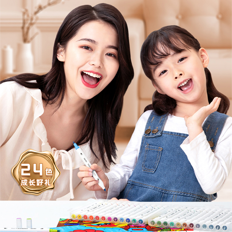 双头设计,酒精墨水,圆形笔杆,24色容量,色彩鲜艳。