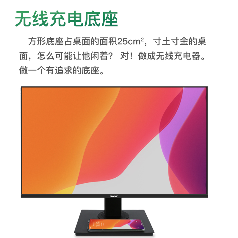 采用1080P IPS液晶面板,75Hz刷新率,119%sRGB色域,178°可视角度,支持65W反向充电,带无线充电底座。