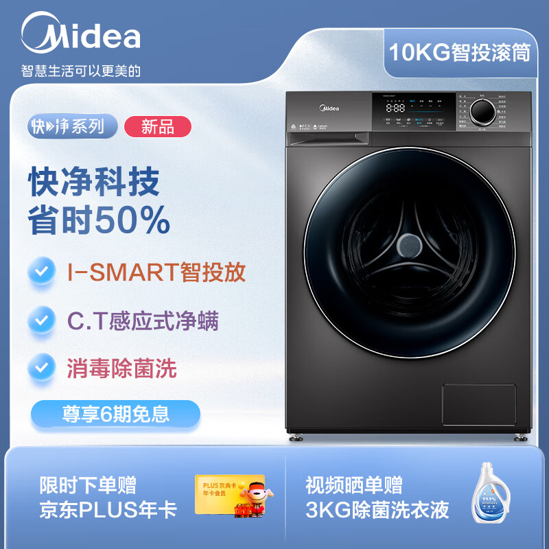 当前的位置: 首页 > 今日值得买 > 美的(Midea)滚筒洗衣机全自动10公斤变频 感应式净螨除菌 智能投放 快净系列 MG100V58WIT 以旧换新