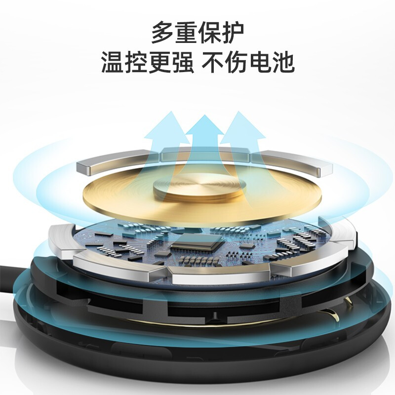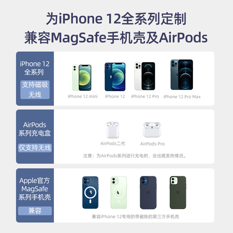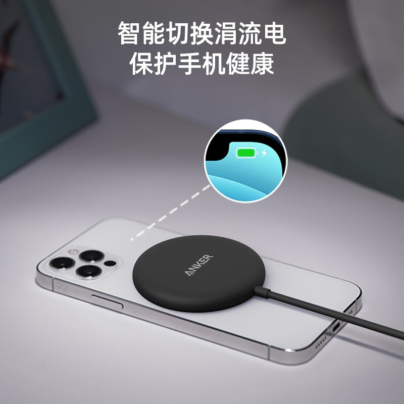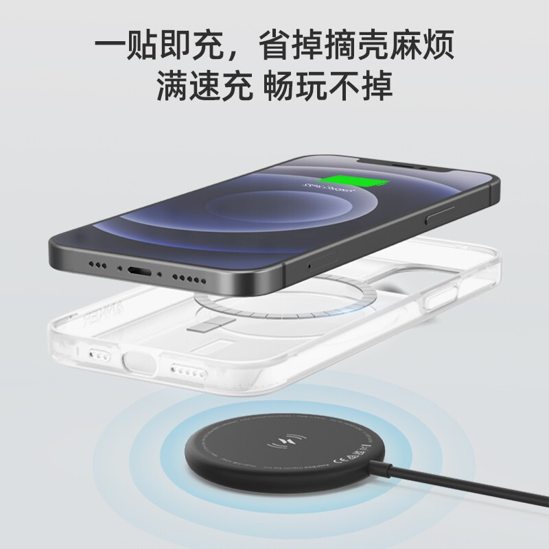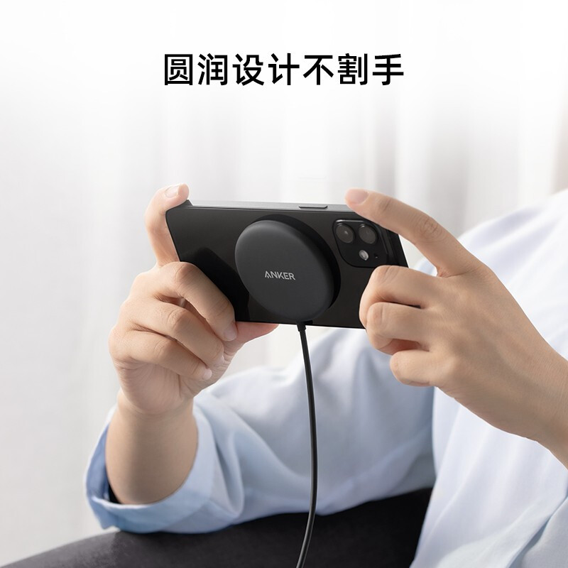 这款无线磁吸式充电器拥有 1500Gs 超强磁吸力,4mm 距离自动吸附,可 360° 旋转吸附充电,自带 1.5 米数据线,7.9mm 浅薄机身,外表采用亲肤涂层,可为 iPhone 12 提供 7.5W 功率无线快充。配置 Type-C 接口,附赠 USB-A 接口。可为兼容 MagSafe 手机壳以及 AirPods 系列充电。