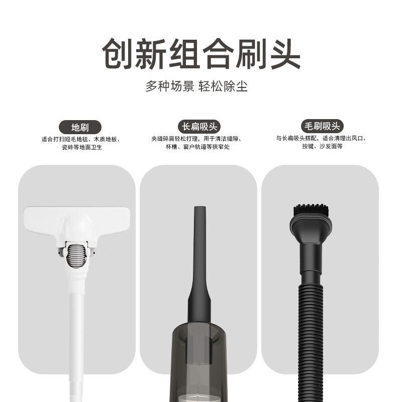 手持式吸尘器 6000pa有线:敏捷手持模式,攻克各种清洁难题。可视化尘桶,倾倒不扬尘。可拆卸水洗,重复利用。适合多个场景卫生整理。适用于地砖、短毛地毯、木地板等 各种地面,在哪里也能为你扫出一篇天地。