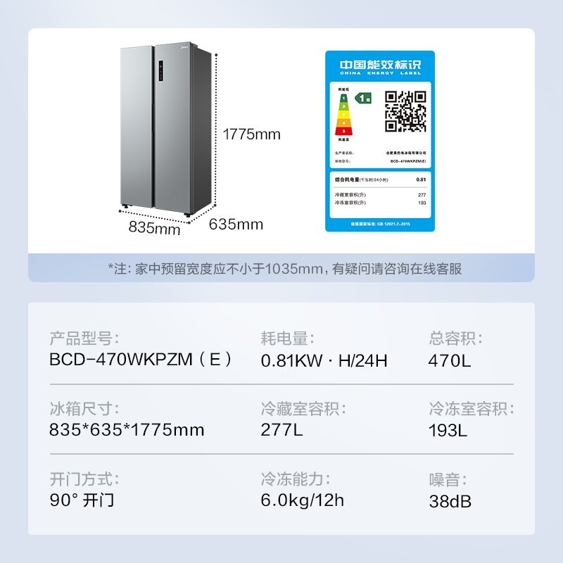 当前的位置: 首页 > 今日值得买 > 美的(Midea)变频一级能效对开门家用冰箱 智能家电风冷无霜纤薄机身大容量精细分储双门冰箱 470升铂金净味BCD-470WKPZM(E)
