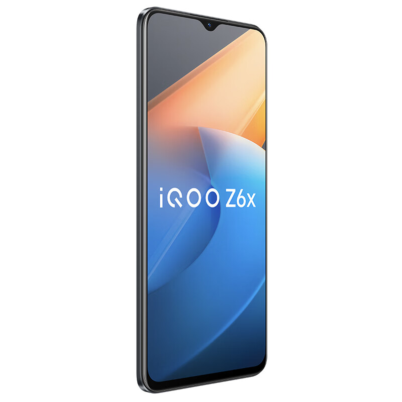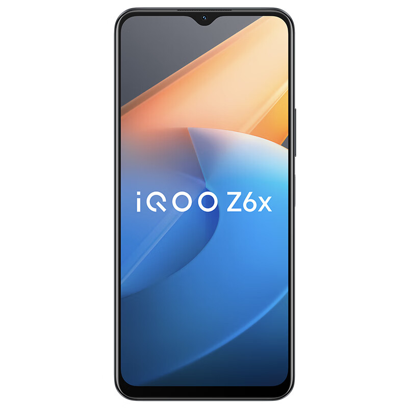 iQOO Z6x此次提供了黑镜、蓝冰、炽橙三种配色,正面配备了一块6.58英寸2408 × 1080分辨率的 LCD 水滴屏,60Hz刷新率,拥有莱茵护眼认证,手机厚度9.27mm,重量约204g。