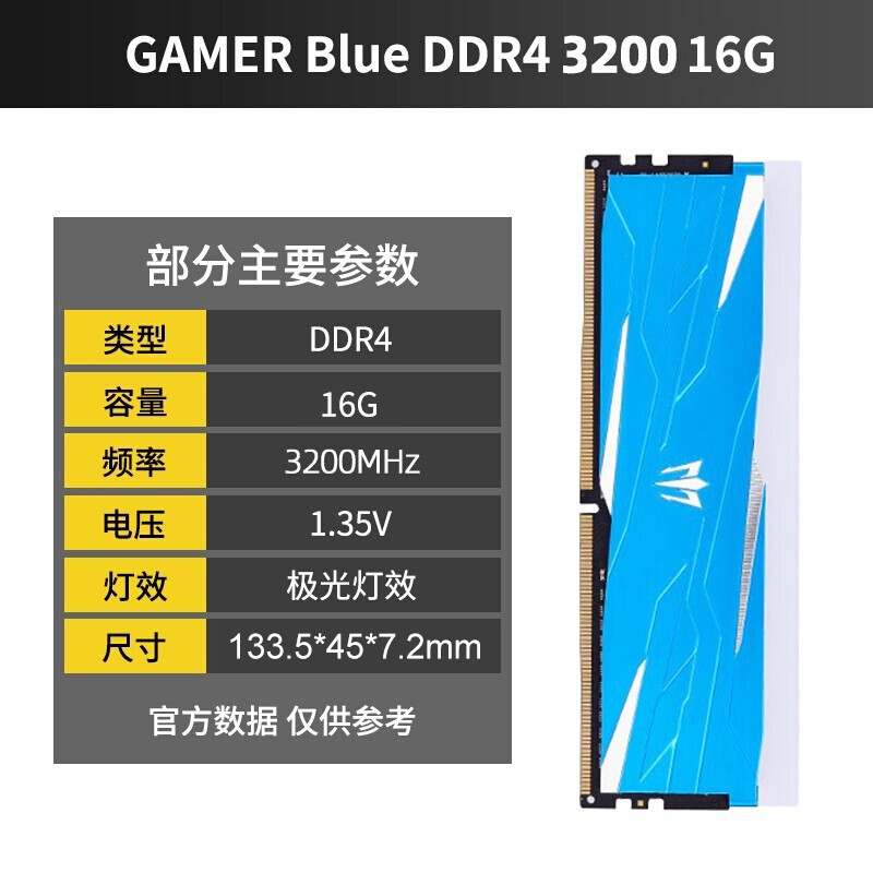 大面积发光区域,标称支持 3600MHz 频率,1.35V 电压。