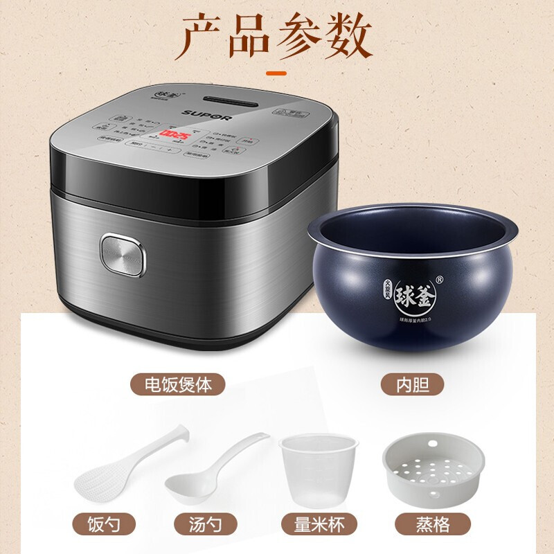 当前的位置: 首页 > 今日值得买 > 苏泊尔(SUPOR) 电饭煲电饭锅4L小容量家用4-5-6人蓝钻球釜内胆智能预约多功能煮饭锅烘焙面包 金属拉丝机身