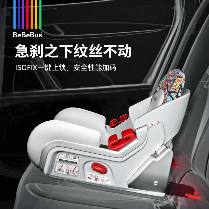 bebebus探月家儿童安全座椅增高垫一体成型,双档调节,一档98°轻松仰坐,二档110°睡眠模式,舒适仰坐。采用人体工学设计,贴合宝宝身体,表层采用冷凝记忆棉材质,舒适性与抗震性兼备,ISOFIX硬接口,一键上锁,坚固稳定。