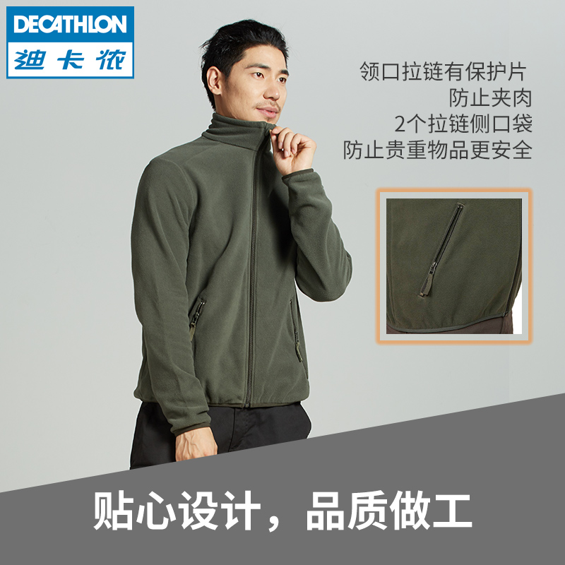 迪卡侬(DECATHLON)来自法国的体育用品品牌,由Michel Leclerq于1976年创办,是全球最大的体育用品零售品牌之一。其商品包括运动服饰,运动装备,运动器材等。迪卡侬精准定位大众运动市场,致力于汇聚大众运动于一个屋檐下,目前在全球二十多个国家和地区开展零售业务。这款迪卡侬男士抓绒卫衣,拉链开合,100%聚酰胺材质,肩膀处加厚增加了耐磨性,摇粒绒保暖设计,柔软舒适,袖口处收紧设计防风保暖。