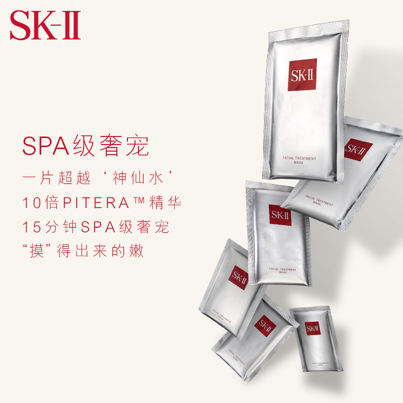 SK-II诞生于日本,拥有专利成分Pitera,于1998年进入中国大陆,其神仙水被大家熟知。这款SK-II青春敷面膜每片含有30ml神仙水配方的Pitera精华,由一种酵母在发酵过程中提炼出的液体,不含酒精、香料及色素,含有大量对皮肤有益的元素,可渗入真皮层,促进皮肤的新陈代谢,调整皮肤酸碱平衡,以及具有十分优异的滋润及保湿功效。使用前彻底清洁面部,把面膜敷于面部十五至二十分钟,去掉面膜后可以先不清洗,让养分继续渗透。