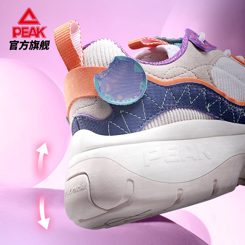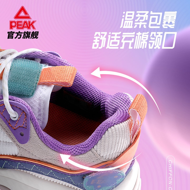 专属女性设计,鞋舌处雾珠点缀 俏皮可爱,同时呼应COOKIE 主题的巧克力豆,前卫个性,鞋面设计融入女性柔顺线条,帮面大面积 灯芯绒覆盖,更添几分温柔属性, 质感满载,潮搭百变。以COOKIE饼干图案,与品牌LOGO融合呈现, 趣味潮玩,魔术贴可随处粘贴,效果拉风。