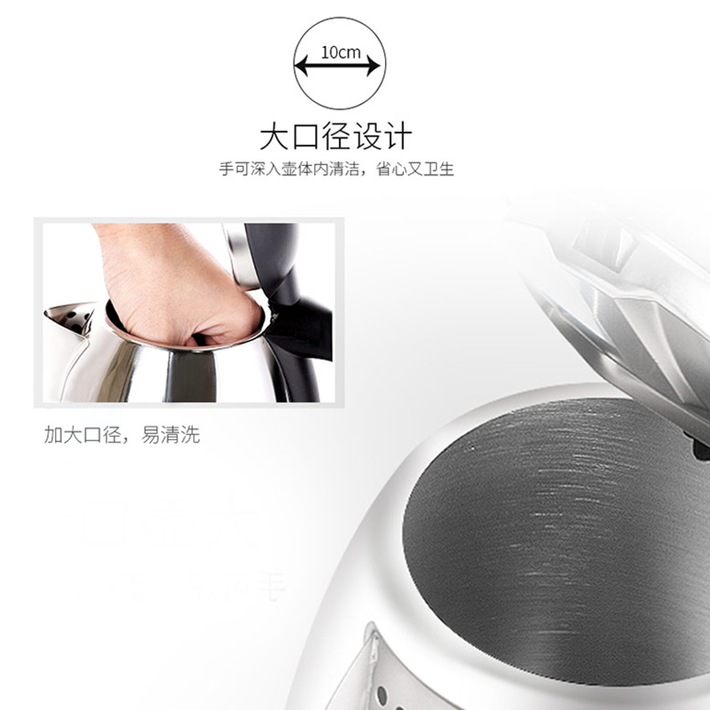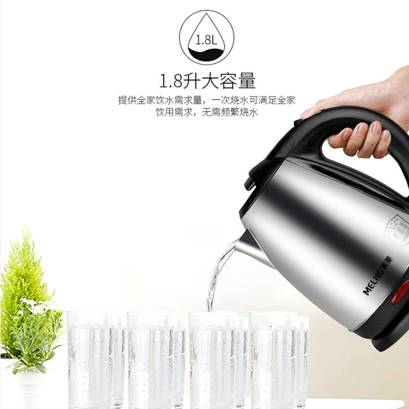 美菱MH-1801电热水壶,1.8L容量,内胆采用304不锈钢材质,用料安全。优质控温器准确控温,配合蒸汽感应开关,支持高温熔断保护,水开即停防干烧。1500W大功率,完全煮沸只需5分钟,大口径设计,方便清洁,一键操作,方便简单。