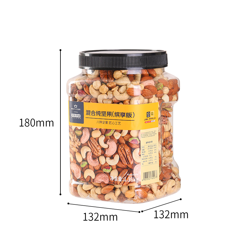 从全球优质产地甄选5种坚果,只为一口好味,从全球优质产地甄选原料,只用当季坚果,层层筛选,粒粒新鲜,轻烘慢焙拒绝高温油炸,不干炒,非油炸,坚持慢火轻焙,大限度保留原果本真味道,口感更酥脆,好吃到停不下来。工厂通过BRCA级认证,从原料把控、生产加工、产品制成、成品检测到成品入库,拥有完整的质量控制和管理链。规格:1.1kg。