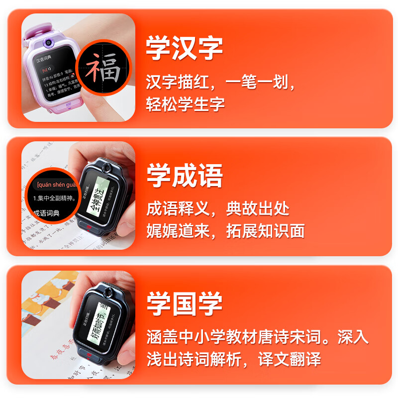 作业帮 X9 智能学习手表,支持4G全网通,采用一块1.6英寸AMOLED显示屏,采用4*A53 四核处理器,内存为1GB+8GB,780mAh大电量。该手表自带词库,支持扫描翻译、课本同步扫读、还支持同步教材单词,随时随地学单词。支持9重精准定位。随时了解孩子所处位置,采用前置500万像素摄像头,视频通话更清晰。支持IPX8防水。