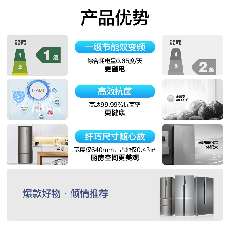 这款海尔BCD-328WDPD多门冰箱采用变频压缩机及风机的双变频组合,温度浮动更小,运转平稳,节能省电,风冷循环,采用法式对开门设计,冷藏室181L,内置T·ABT净味杀菌功能,变温室30L,支持果蔬、冰镇、0℃保鲜三档变温调节,冷冻室117L,双层直开设计,可容纳更多大型食材,冷冻能力5.5kg/12h,综合耗电量0.65kw,新国标一级能效,拉丝材质面板,整体尺寸为681.5* 640*1804mm