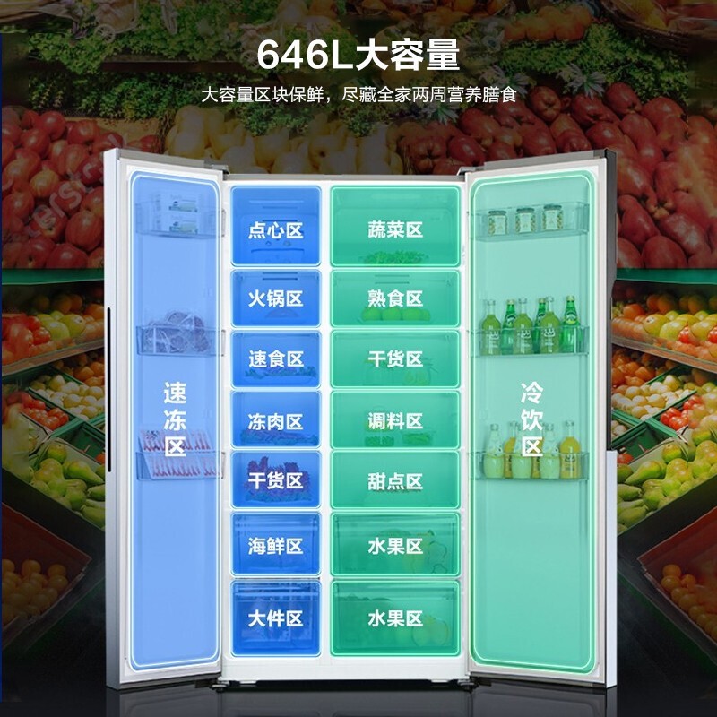 系列冰箱主打大容量对开门,采用了变频一体式离心风机+矢量变频压缩机的双变频设计,营造精准恒温空间,有效提升保鲜效果。带有养鲜魔宝,抗菌率高达99.99%,守护美食健康。