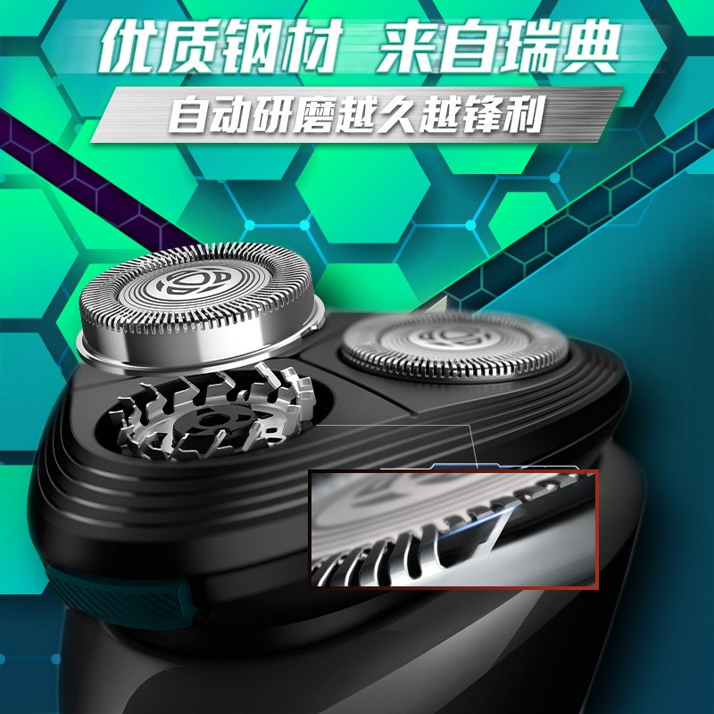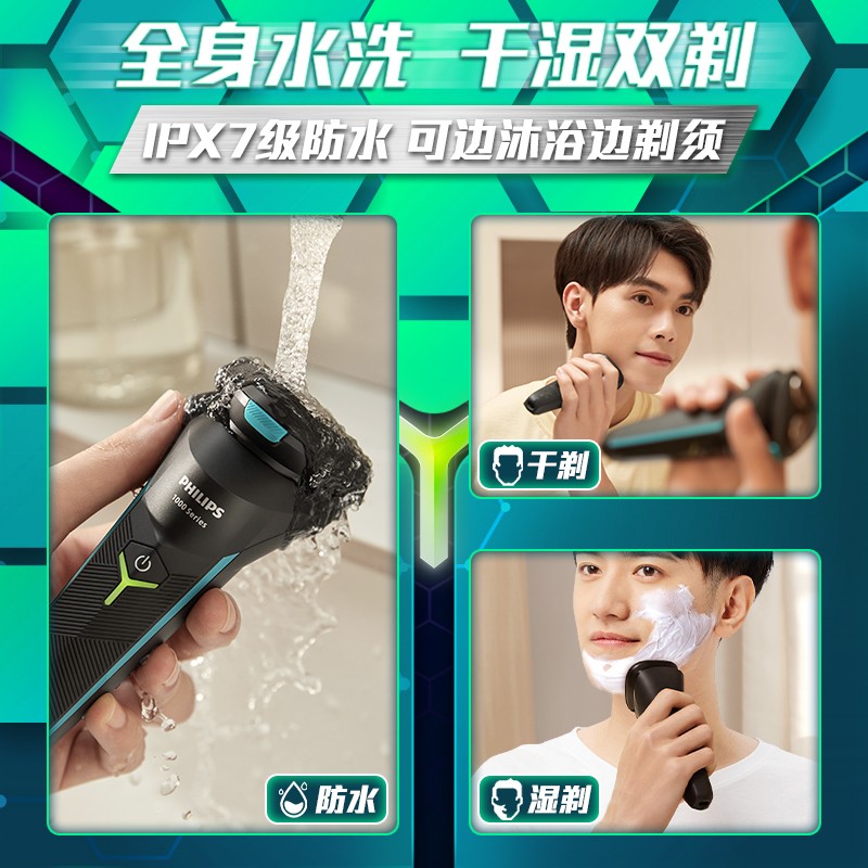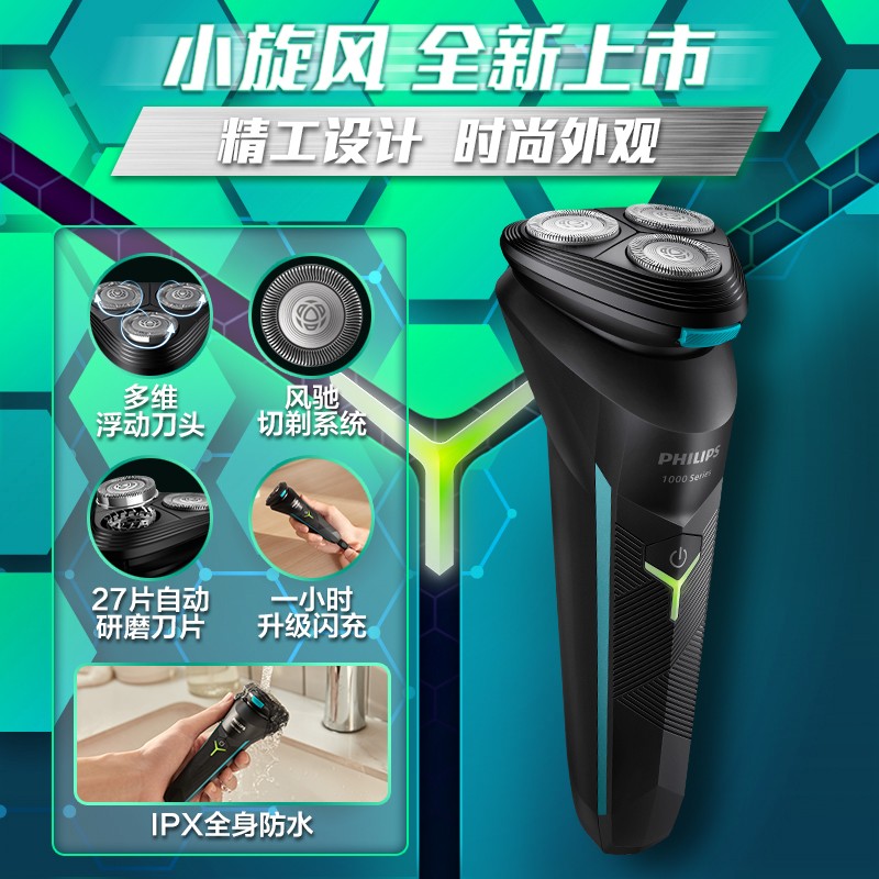 飞利浦(PHILIPS)男士电动剃须刀全身防水净剃胡须刀刮胡刀进口双刀头 赛博朋克款-S1115/02圆润刀头,减少摩擦。采用瑞典手 术器材用钢,抗敏感材质,避免肌 肤敏感。56700+次/分钟快速切剃,实现 快速净剃,减少胡须拉扯,保护皮肤。