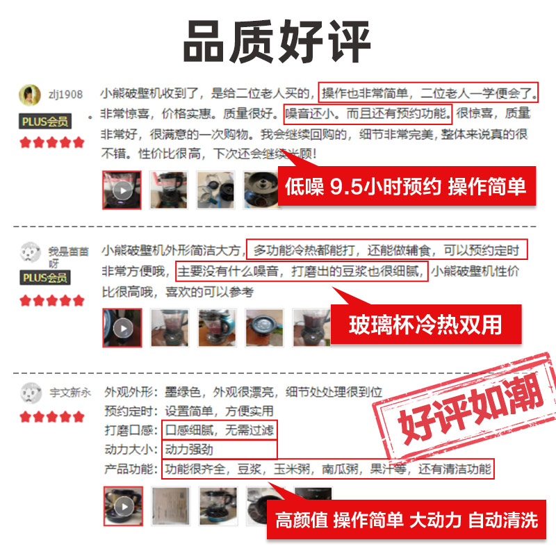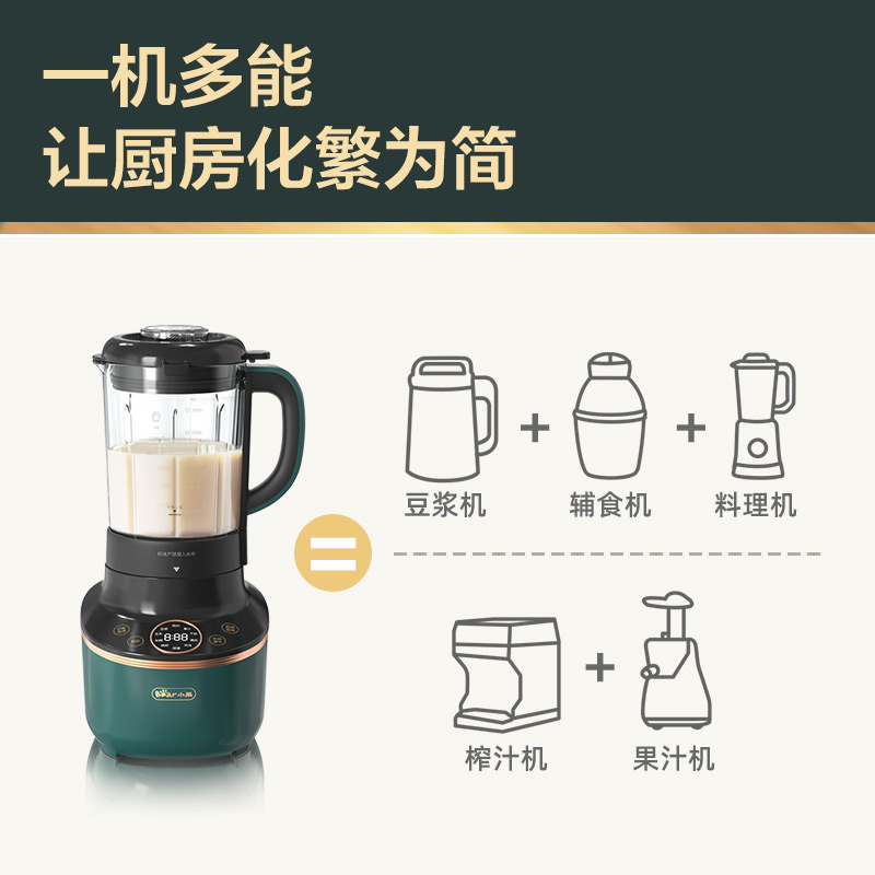 当前的位置: 首页 > 今日值得买 > 小熊(Bear)破壁机 家用 降噪预约加热豆浆机 多功能早餐机 料理机 榨汁机 辅食机 PBJ-B08L1 1.5L
