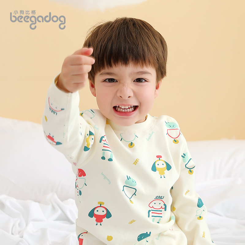 这款儿童内衣套装,柔和贴身,吸湿性、透气性好。上衣罗纹领口柔软舒适,保暖效果好。衣身饰以大面积印花图案,萌趣可爱。罗纹袖口弹力大,不摩擦皮肤。裤腰松紧适宜,不勒肚子。裤脚保暖不上缩。版型贴身不紧绷。