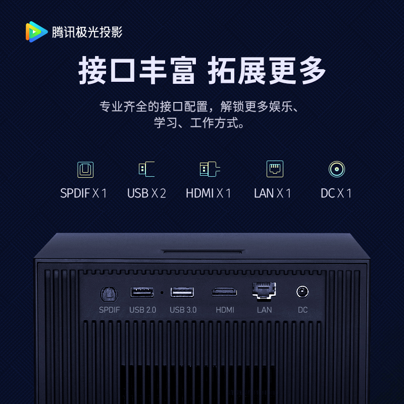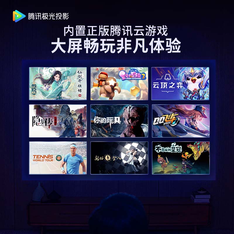 软件上,内置正版腾讯START云游戏,热门游戏在线畅玩;升级HDR10+HLG双解码技术,提升画面色彩明暗层次,游戏、观影更具真实感;智能化再升级,支持自动对焦功能、全自动梯形校正、自动幕布对齐、智能避障功能,使用更方便;小屏变大屏,支持手机、电脑、平板等小屏设备一键投屏/同屏,小屏精彩大屏看;内容涵盖腾讯视频海量资源,支持播放3D电影;升级版极光UI,交互体验更人性化,操作简单便捷。配件上,全新升级高品质遥控器,握感舒适,经久耐用。