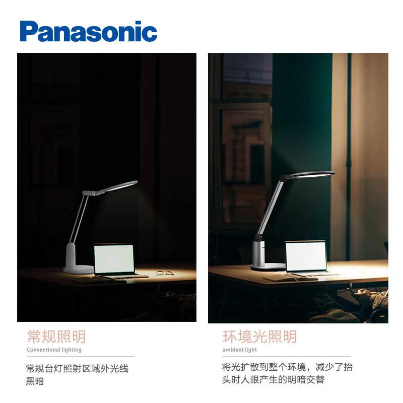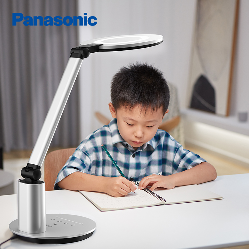 Panasonic 松下 HHLT0651S 这款致巡护眼台灯,AA级照度,舒适延缓疲劳,168颗灯珠,柔光寿命长,RG0无蓝光危害,18.5cm光源面积,舒适侧发光光源,覆盖约2米桌面,磨砂表面,RA≧95,色彩还原真实,特质钢化玻璃工艺,均匀磨砂表面,增加立体感。多功能触控与酷炫滑动,让您的指尖轻松掌控亮度。拥有工作、阅读、延时关灯、自动调光、夜灯多种功能模式,环境亮度感应装置使注意力不再被动分散。恒流模拟调光技术,通过保证电流的稳定性让台灯在高亮度或低亮度时都能杜绝闪频。功率:20W,光通量:700LM。