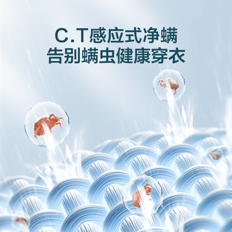 美的(Midea)这款型号为MG100A5-Y46B的滚筒洗衣机,具有10公斤大容量,采用BLDC变频电机,支持C.T感应式净螨功能,通过纳米蒸汽释放、高温持续洗、水聚合技术、澎湃水流冲刷实现100%除螨,具有多种洗涤程序,其中包括特色羽绒服洗,通过温柔洗涤、缓慢脱水防止结团钻绒;1.05洗净比,配备抗菌门封圈,内置云影雾灯,避免取衣遗漏,产品尺寸为595*530*850mm。