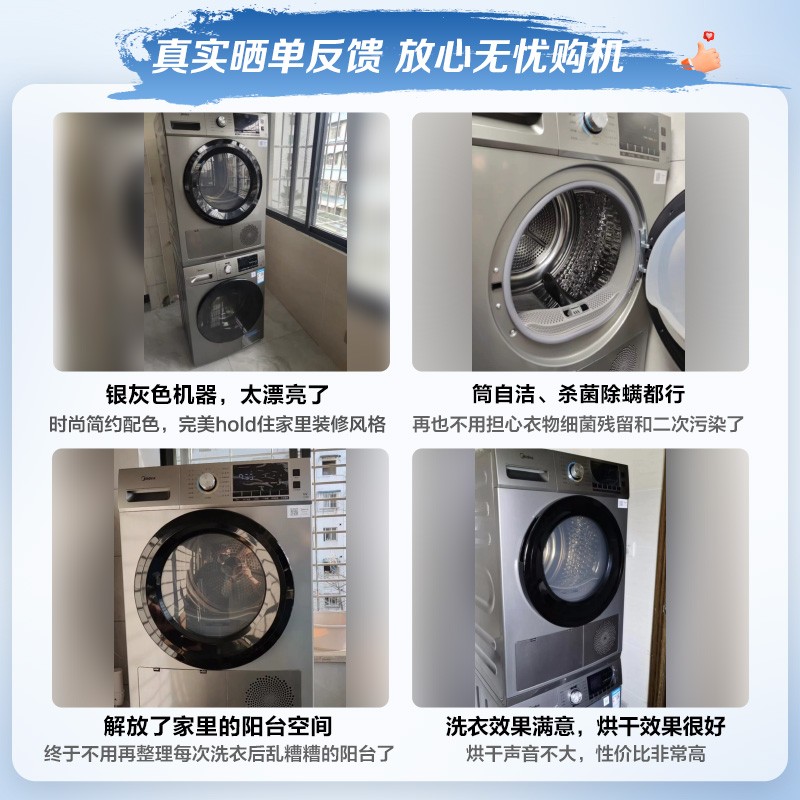 美的(Midea)这款型号为MH100VH05WY的烘干机于2021年发布,容量10kg,采用第二代热泵循环系统,支持42℃低温柔烘和UV紫外线除菌烘;配备四重精密过滤网,包括过滤孔、前置精滤网、粗滤网和后置净滤器,有效拦截宠物毛发、衣物线屑毛绒等;拥有智能防皱功能,120分钟间歇运转避免衣物产生褶皱;采用474mm大内筒,支持AI智能正反转,另外内筒还有防止衣物缠绕的锥形帽设计;紫外线和筒灯一体化设计,拿取衣物更方便;产品尺寸595*625*845mm(宽*厚*高)
