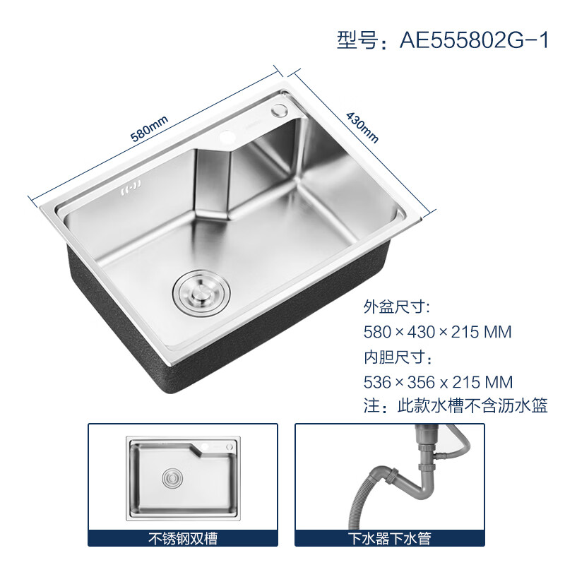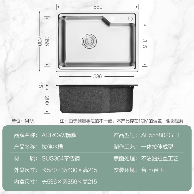 当前的位置: 首页 > 今日值得买 > 箭牌(ARROW)304不锈钢厨房水槽单槽大号洗菜盆小号厨房洗碗盆加厚橱柜商用水池台上台下盆适用 580*430不锈钢单槽AE555802G-1