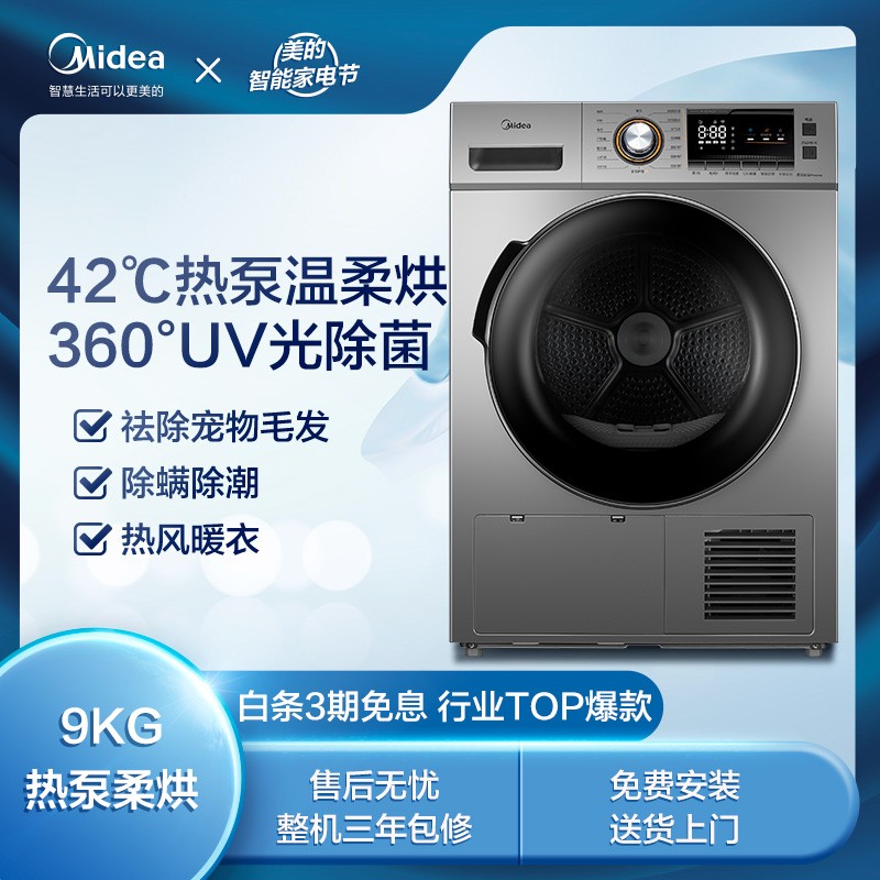 当前的位置: 首页 > 今日值得买 > 美的(Midea)9公斤热泵式烘干机 家用干衣机 紫外线除菌 除螨除潮 祛除宠物毛发 MH90-H03Y