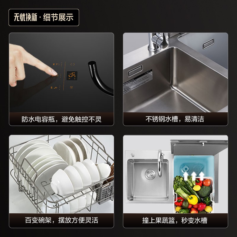 方太 JPSD2T-CJ03L 嵌入式水槽洗碗机具有8套容量,采用诱导宽频清洗技术,原创开放式双泵无管路设计,升级瀑流洗大冲力,360度环布水孔高速旋转喷淋冲刷,效率提升33%,有效清除顽固污渍。低能耗热对流烘干,在餐具清洁结束后引入外界新鲜空气,借助余热将餐具迅速烘干,除菌率高达99.99%。相比前代产品仅增加0.02平方米占台面积,容量却提升了40%,32cm以下锅具可以轻松洗涤。超微气泡+喷淋+湍流三重净透技术,剥离90%以上果蔬表面农残,同样是一台高效的果蔬海鲜清洗机。