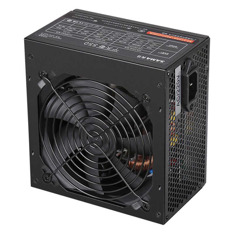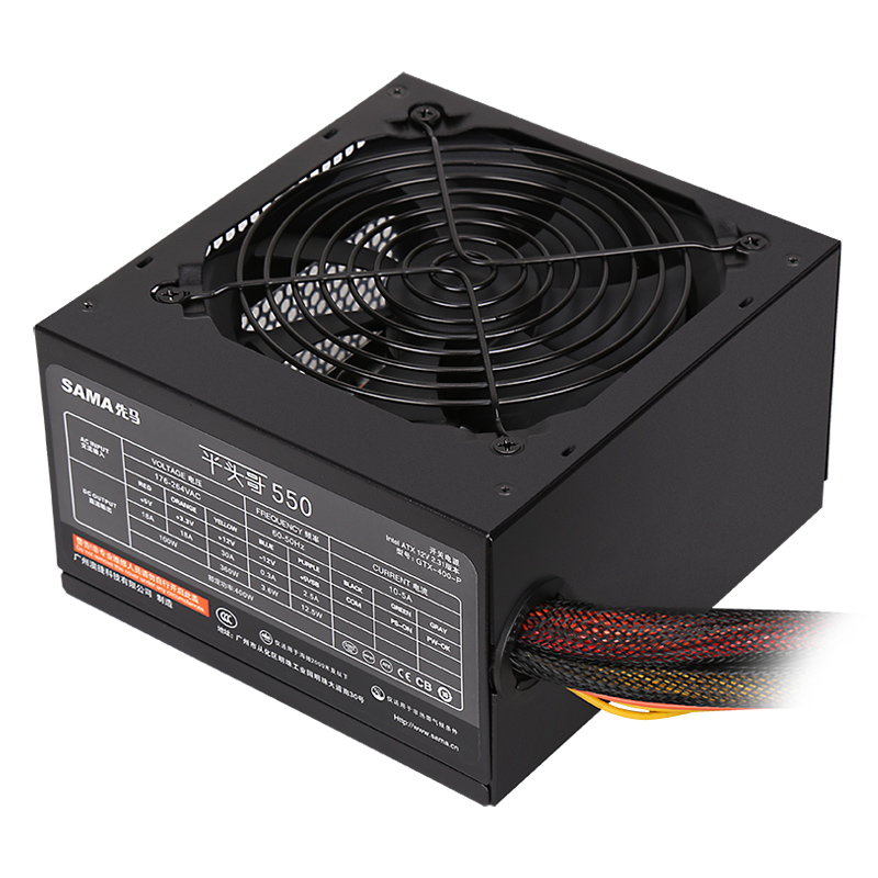 先马 平头哥550电源额定功率400W,标准长线材,采用12cm静谧风扇,大面积铝片协助散热降低风扇压力,6+2PIN接口,主动式PFC设计,电网能源利用率高,单12v设计,提供強劲电流支撑,满足玩家需求。