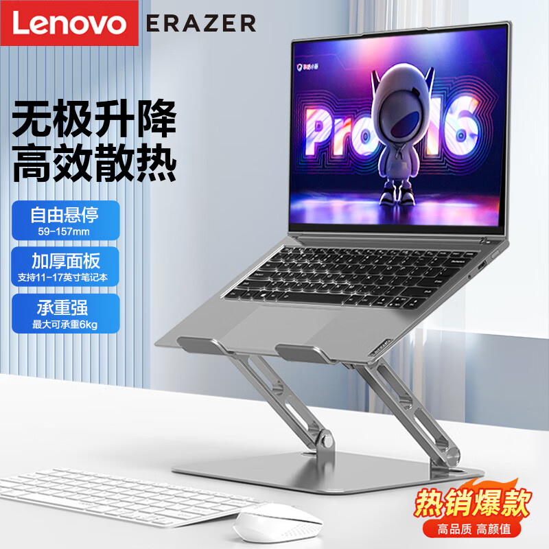 联想 W7 异能者铝合金无极升降支架,多尺寸兼容广泛适用于11-17.3英寸平板,采用铝合金材质经久耐用。双臂无级调节可自由悬停,可将屏幕停留在任意高度。低档高度59mm,高档高度157mm,双轴加固阻尼,轴寿命更长。全角度自由升降,可进行双轴180°调节,满足用户各种需求。20mm加高挡脚,表面硅胶防滑垫,避免使用中的滑动。