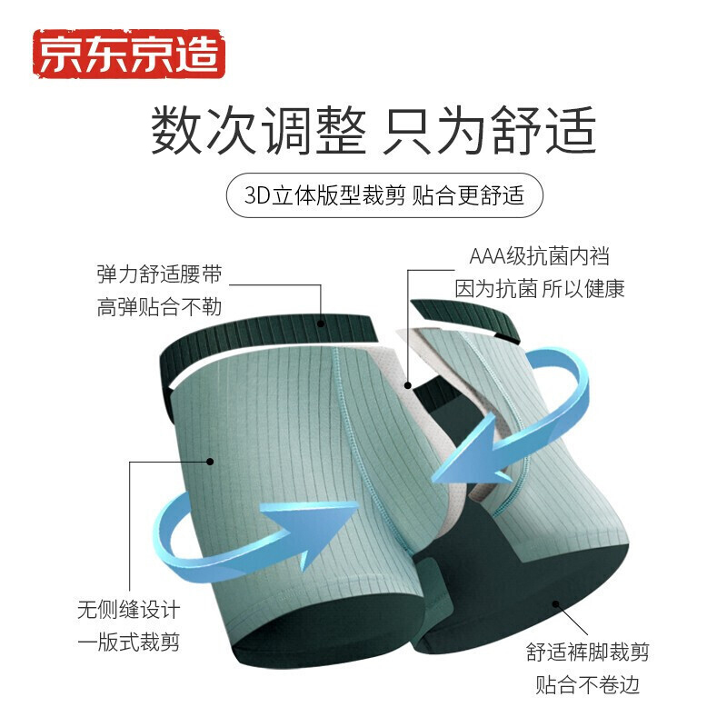 京东京造 503B 男士内裤 4条装,透气抗菌体验,呼吸孔设计,高棉指感受,透气素材,体贴变形,均匀受力,动静皆宜,数次调整只为舒适,3D立体版型裁剪贴合更舒适。