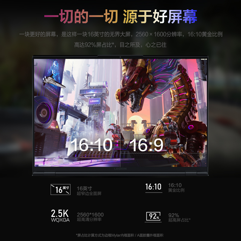拯救者R9000K 2021款,是拯救者针对游戏发烧友推出的旗舰电竞本,具备强悍的游戏实力。外观方面,采用RGB小“Y”灯以及多面金属设计,海盗船iCUE全局RGB光效,300余颗灯珠完全自定义,可以充分打造专属自己的个性化光效。16英寸四边窄边框全面屏,分辨率为2560*1600,刷新率为165Hz,色域为100%sRGB,亮度为500nits,支持DC调光、G-Sync和FreeSync。厚度约20.1~23.5mm,重量约2.5Kg。