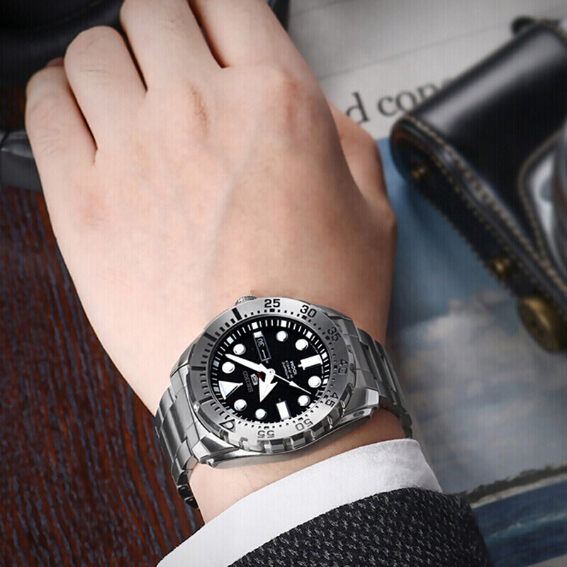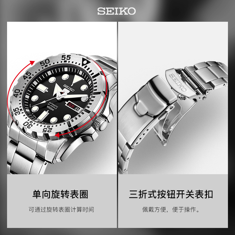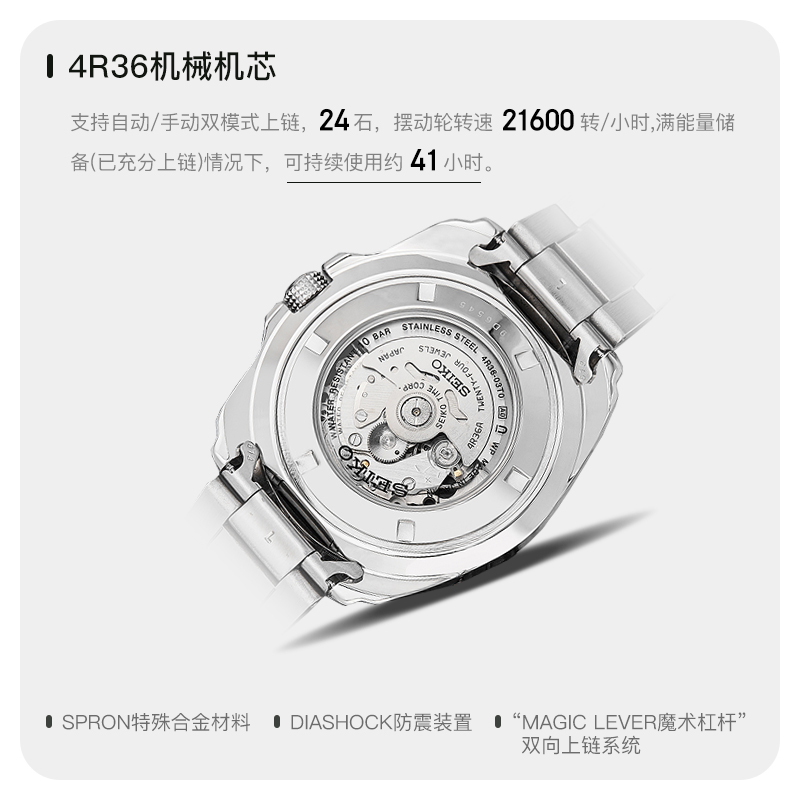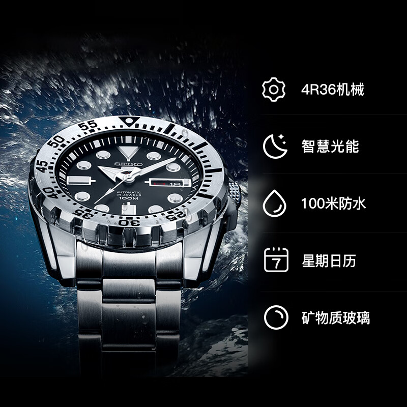此款SRP601J1有着精工经典的水怪造型,在国内人气也很高,张扬粗犷的齿轮外圈加上拉丝质感,总给人“结实耐用、随便折腾也不怕”的皮实感。采用了4R36机芯、100米防水、表径44mm,带有星期日历双功能, 刻度和指针都粗壮醒目,易于辨认,夜光效果也很赞。
