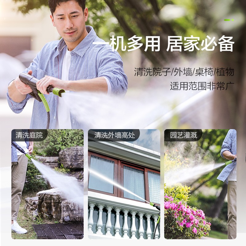 强劲水压,多种场景可用,除了家庭洗车,还可以用来冲洗地面、阳台、窗户、空调,多用途。