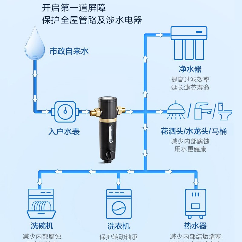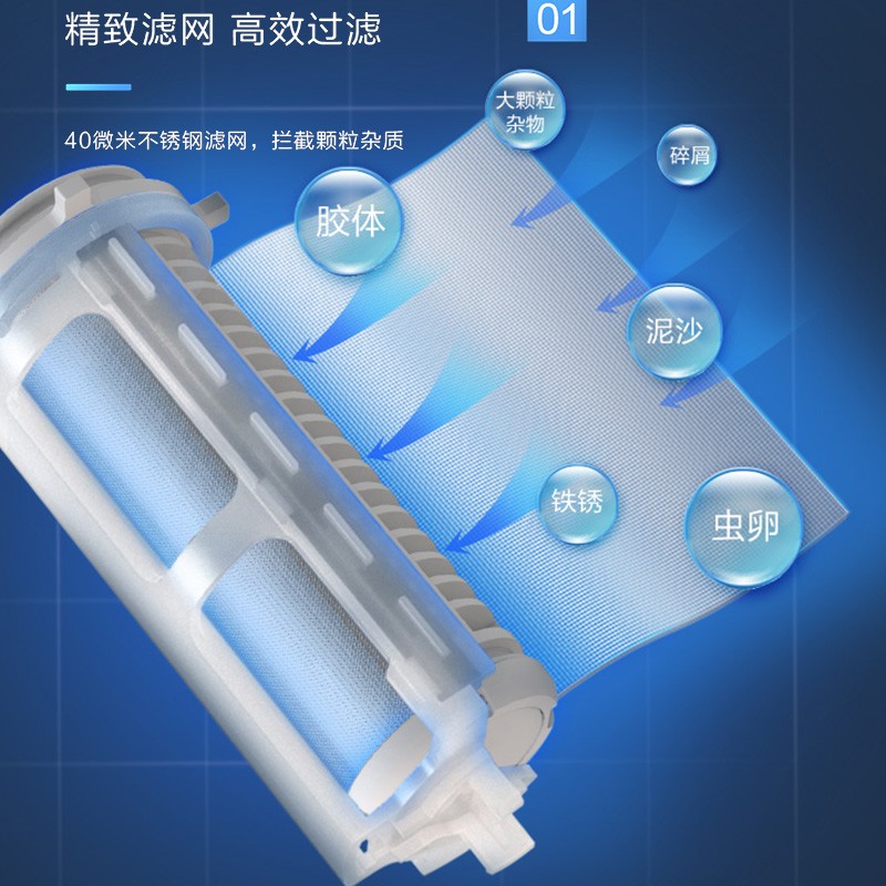 高效过滤40微米过滤精度,相当于头发丝的一半,高效过滤泥沙、铁锈、虫卵等大颗粒物。澎湃流量,5吨/小时充沛流速,从容应对大户型用水需求(洗澡用水、洗衣服用水、洗碗用水)。三维全面冲洗,二维正冲(直流冲洗+双面刮洗)一维反冲(高压反喷洗),三维全范围守护。