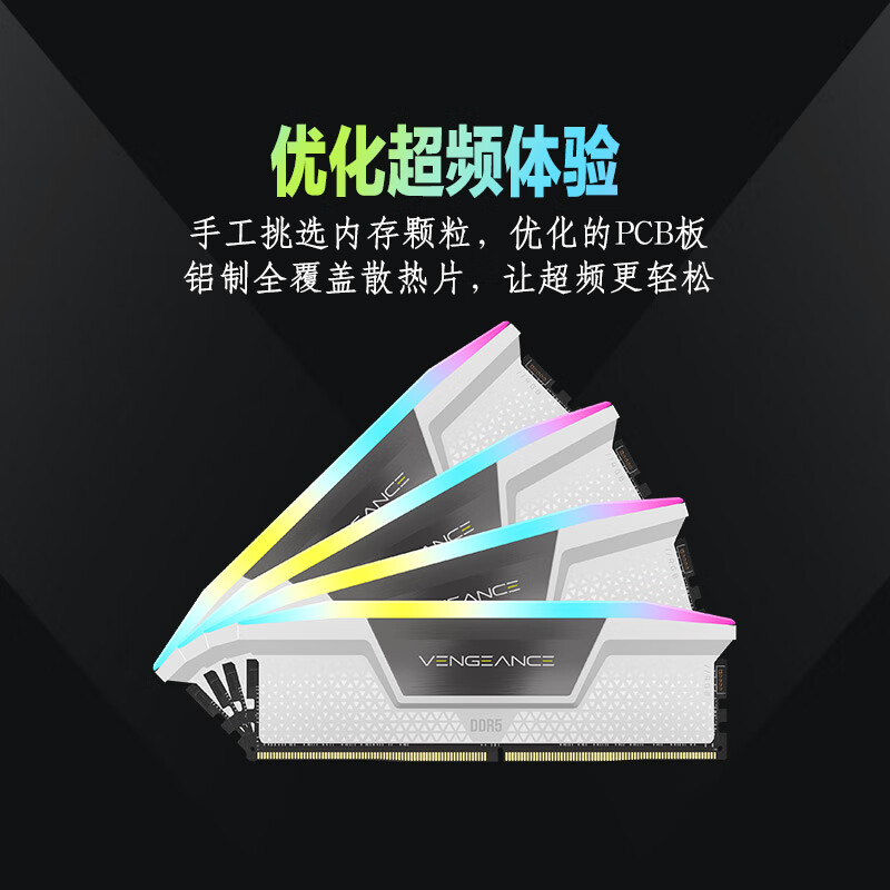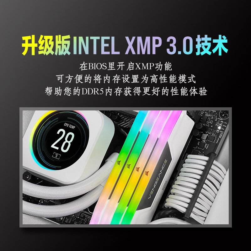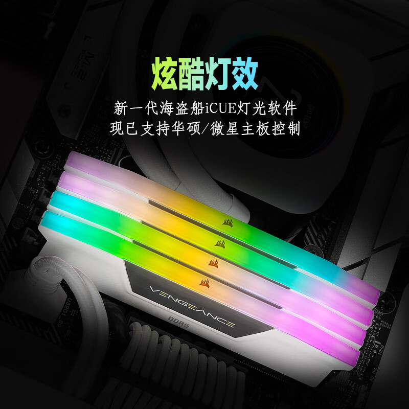 美商海盗船此款复仇者RGB灯条电竞内存条,容量为32GB(16GB*2)套餐,时序为40-40-40-77,5200MHz频率,电压为1.25V,内存采用精选颗粒,支持XMP3.0一键加速技术,并且可以与其他iCUE兼容产品同步,还可以实时监控频率/时序/温度等内存信息,同时可以通过美商海盗船iCUE软件,控制支持AURA的华硕主板/微星主板灯光,并与iCUE设备同步。