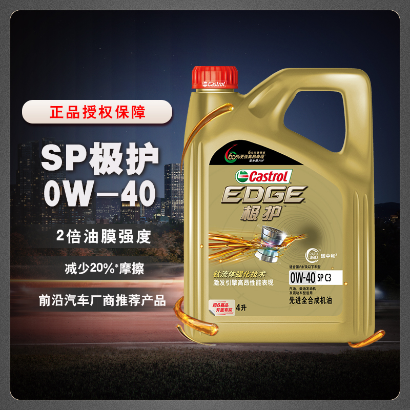 嘉实多品牌在1899年创立。1989年进入中国,目前嘉实多已成为中国润滑油市场的重要运营者。在乘用车油品领域,嘉实多拥有极护、磁护、嘉护系列等几个主要的核心品牌。作为嘉实多旗下的高端润滑油品牌,嘉实多极护拥有独树一帜的“钛强”基因——钛流体强化技术,可提供双倍*油膜强度,并减少最高可达15%*的表面摩擦。(*嘉实多内部研发数据,基于和不含钛流体强化技术的嘉实多产品相比较)嘉实多极护0W-40 A3/B4拥有钛流体强化技术,可以让您从容发挥发动机的超强性能。无论是时尚的高级车辆、运动车型、还是豪华车辆。这些车辆需要更低粘度、更高性能的润滑油。