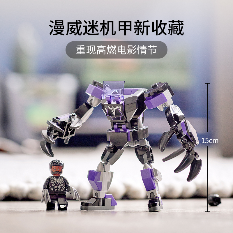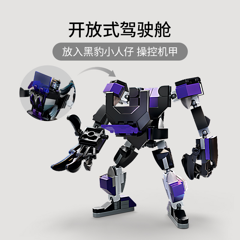 控制强大的机甲展开漫威行动把精彩的漫威冒险放到孩子的手中。他们可以把黑豹小人仔放进黑豹机甲的驾驶舱。机甲可活动的巨型手臂、腿部和利爪可以启发无尽的超级英雄行动,孩子们可以与坏人对战,与其它机甲大战,以及重现他们喜爱的漫威电影场景。当一天的行动结束时,可将这款黑豹机甲展示在孩子房间中,看起来非常酷。