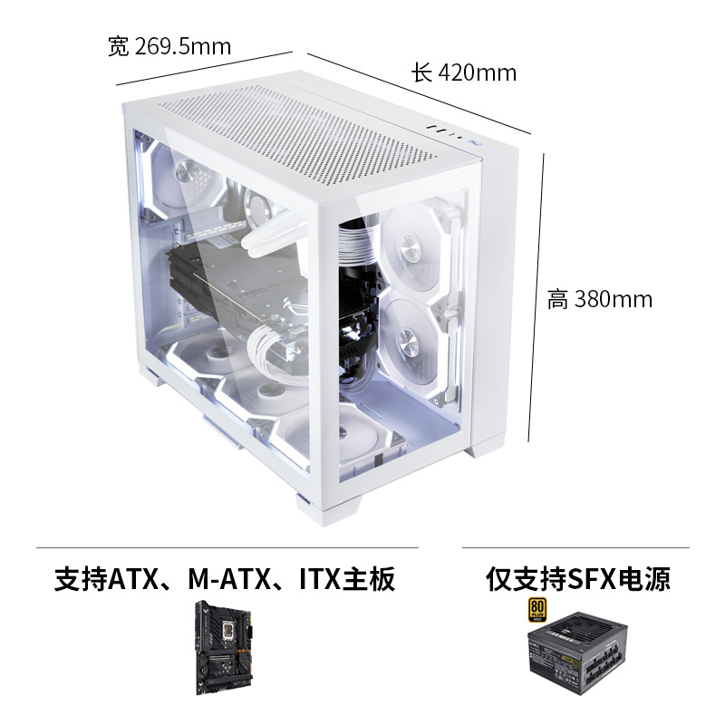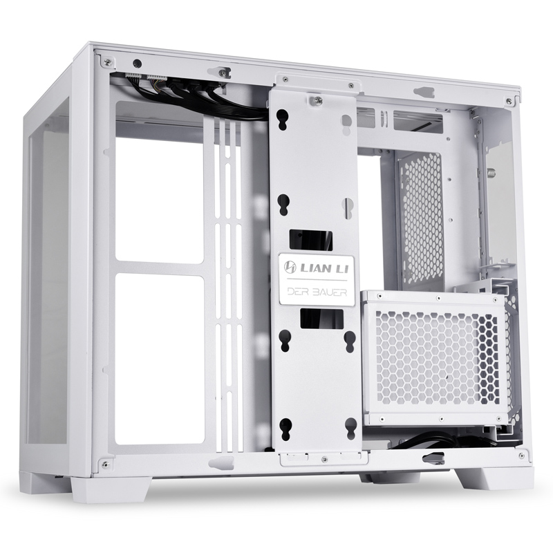 联力 此款 包豪斯mini 机箱 采用拉丝铝合金和钢化玻璃的混合材质,拥有白色、黑色、雪白色三个配色可选。作为包豪斯系列的成员,包豪斯mini后板与水泵架采用模块化设计,能够根据配置灵活选择后板与水冷安装方式,拥有不错的兼容和拓展性。内部采用双仓设计,并提供多个扎带和魔术贴辅助走线。
