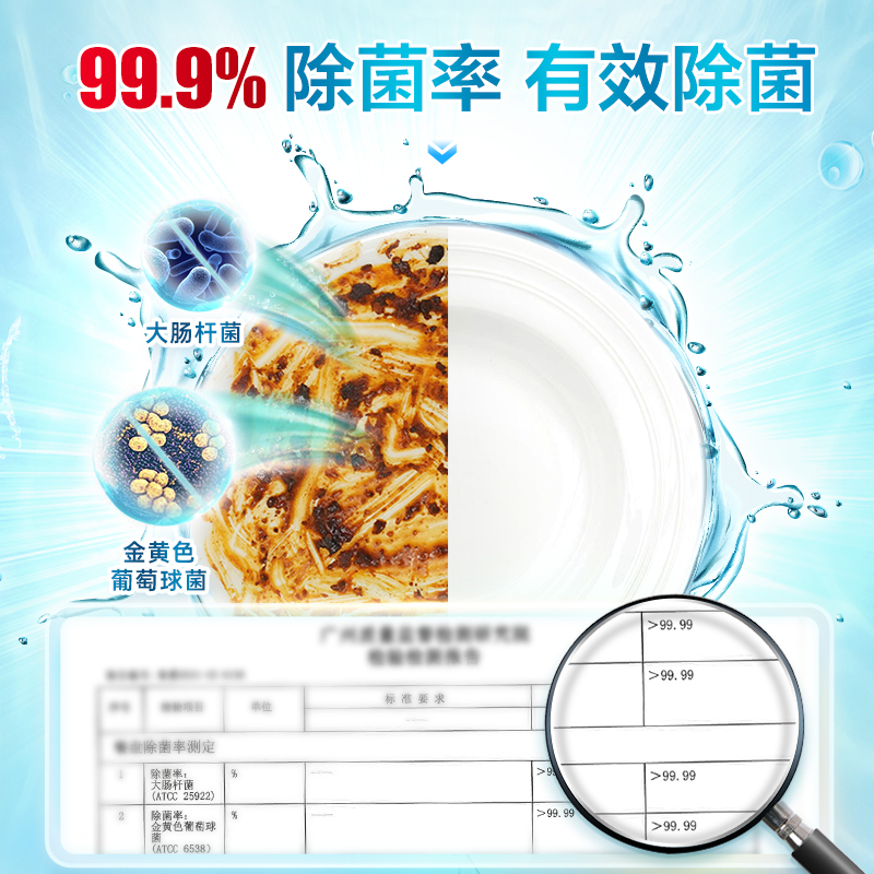 三效合一,轻松去除中式重油污,无添加无残留,除菌率>99%,支持快洗,高纯度盐,软化水质,减少水垢,保护机体。