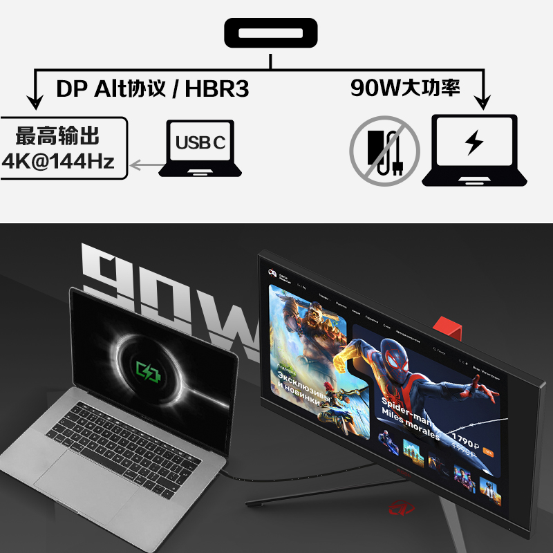 采用了31.5英寸IPS面板屏幕,分辨率最高可到4k(3840x2160),刷新率高达144Hz,超清的画质,流畅的动作集于一屏,让3A大作的视效魅力释放出来。配备90W功率Type-C接ロ,满足大部分游戏笔记本满血画质输出、并可替代本身电源适配器,真正一根线全搞定。同时配备高宽容度HDMI2.1接口,为主机定制,无论PS5亦或是 Kbox Series都能够输出满血画质。拥有10.7亿色数,所呈现的色彩数量是8bit的64倍,细腻的色彩过渡,告别色彩断层。