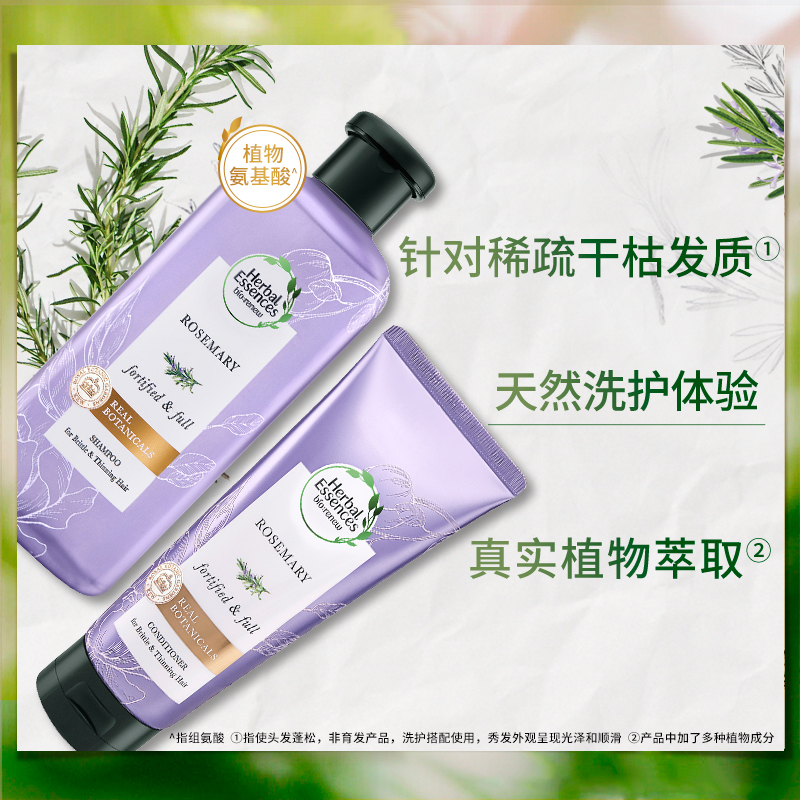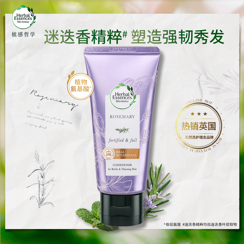 植感哲学(Herbal Essences)这款强韧秀发迷迭香护发素,专门针对稀疏干枯发质设计,添加植物萃取成分,温和修护受损秀发,令秀发柔顺强韧。