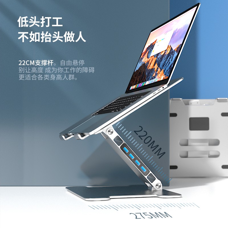 支架上带有4个USB3.0接口,可外接鼠标、键盘、U盘等外设,兼具稳固与功能。随机附赠一根USB-A转Type-C的数据线,方便连接带有Type-C接口的电脑,如果担心供电不足,奥睿科LST-4A还贴心配备了一个MicroUSB的接口,可输入5V2A,保证USB接口电压稳定,即使USB接口外接小台灯或者打印机等设备,也能保证电压稳定。