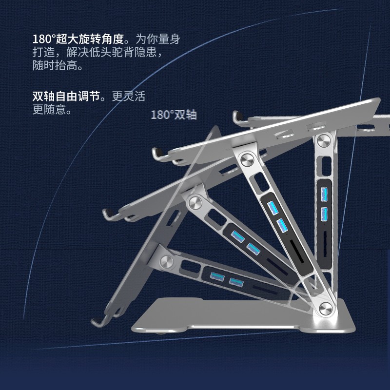 奥睿科LST-4A整体使用铝合金打造,磨砂手感舒适,高强度承重,稳重不摇晃。超高的导热性、镂空散热设计,可以迅速把笔记本电脑D面的热量导出。支架面还贴心的放置了加厚硅胶,保护金属机身的笔记本电脑不被划伤,而且稳定不易滑动。方便收纳,高度最低可压缩至50mm,可以较为轻松的放入背包中,和笔记本电脑一起随身携带,公司、家中均可使用。