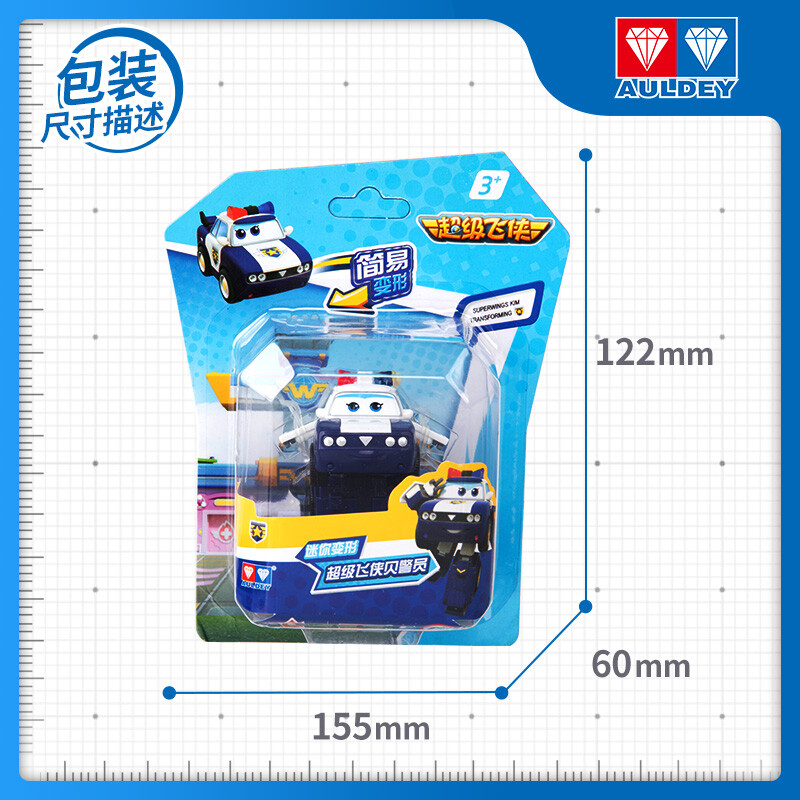 国内的动画衍生周边玩具虽然没有日本那么火热,但也自成一派,并且正在逐渐发展当中,奥迪双钻的超级飞侠系列就是其中的代表。超级飞侠是中韩共同制作的一部动画片,其中的经典角色乐迪、多多、酷飞、小爱等很受小朋友的喜爱。此款为迷你变形贝警原新手警,可简易变形机器人模式、飞机模式,适合3岁以上孩子,大小尺寸为55*53mm。