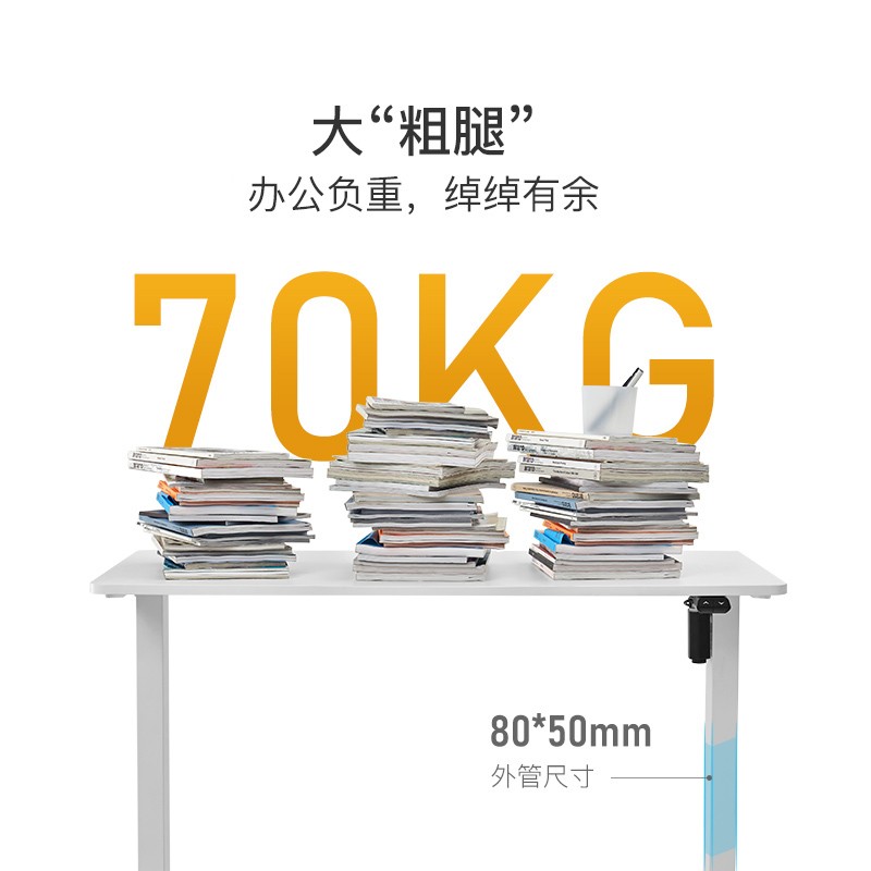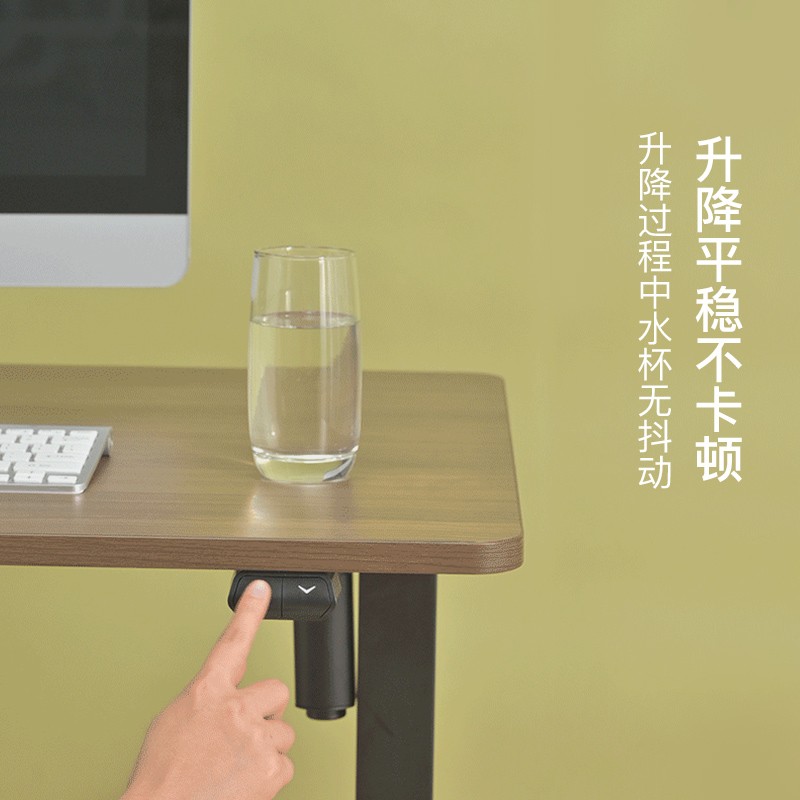 桌面的右侧是升降桌的功能按键区域,左右两端的箭头分别是可以控制桌子的升降,是屏幕上显示的数字为桌面实际高度,另外的1234以及s是高度记忆功能,升降桌可以同时存储4组数据一键调整高度。虽然是触摸式的按键,但是在点按操作的时候,都会有震动反馈,给人的感觉还是蛮高级的。桌腿采用了钢架材质,官方 宣称桌面最大乘坐120kg。桌子的升降高度从最低71cm一直可以升高至115cm。得益于双电机同时驱动以及智能芯片控制,升降过程文档匀速,这里我使用了快进播放,实际情况中桌子从最低到最高整个过程仅需12秒。