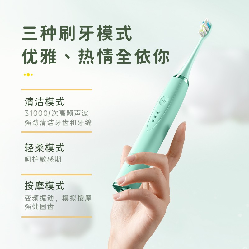 prooral 博皓 T09 电动牙刷,具有31000次/分钟高频声波洁净力,清洁、轻柔、按摩三种刷牙模式可选,支持30秒刷牙分区提醒,2分钟定时关闭,配备轻柔感刷头*2,采用杜邦0.6微米中性软毛,18.5°摆幅,可深入死角,IPX7级防水设计,感应式充电。