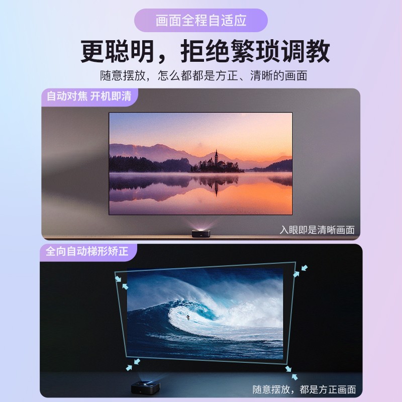 除了基本的投影性能外,最让同行感到压力的是,峰米R1 Nano配置短焦镜头,投射比仅0.23:1,同时支持ToF四向自动梯形校正功能,投射画面即可自动调整画面到最佳效果。在安装方面,不需要专业的安装工程师,自己动手简单调试即可完成。