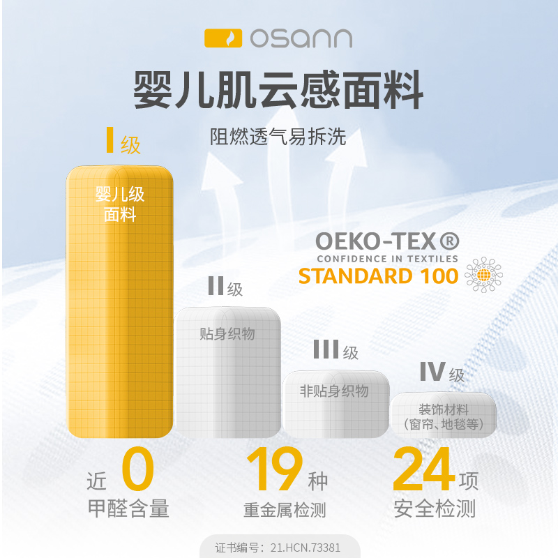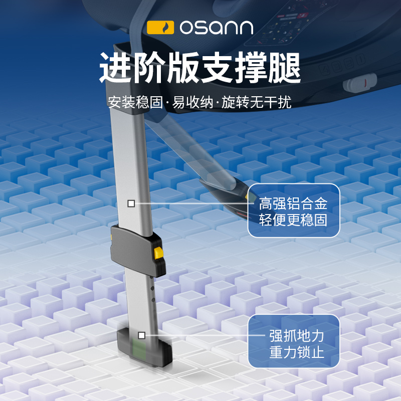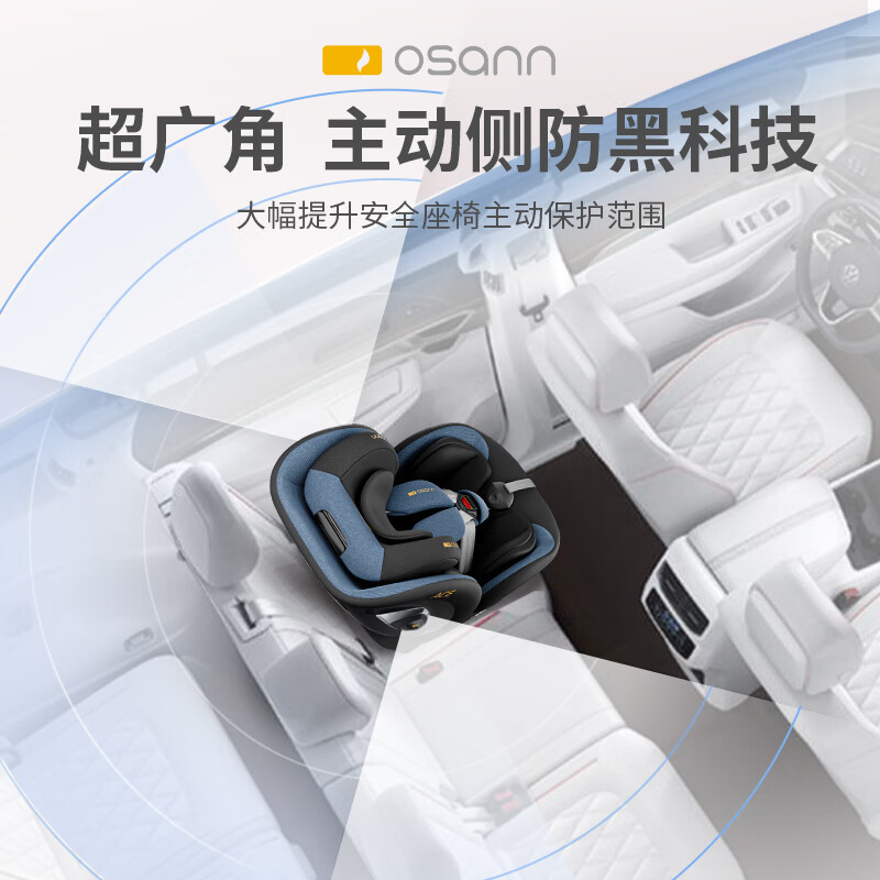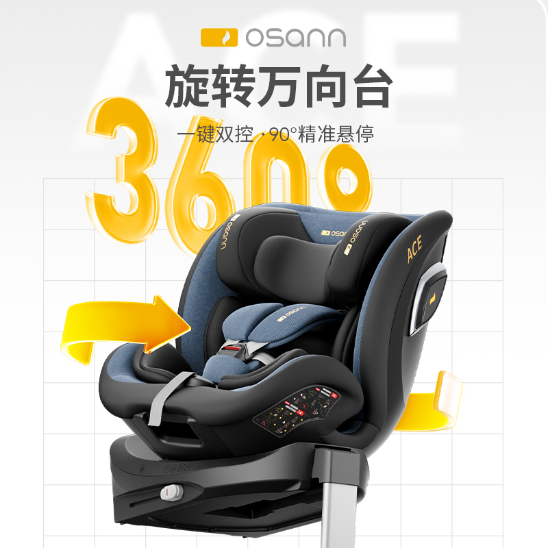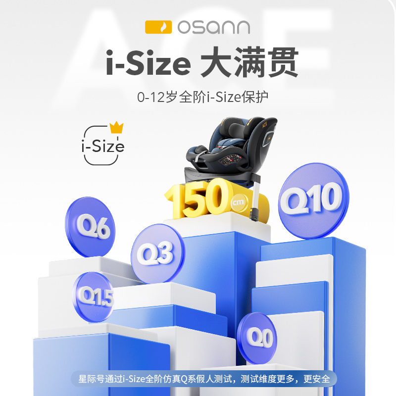 德国Osann欧颂ACE星际号,是一款0-12岁儿童可通用的安全座椅,通过40-150cm全阶段i-Size严格认证。这款ACE星际号是欧颂联合德国斯图加特大学联合研发。在安全座椅的主动防御方面,欧颂独家动态侧防设计,叶脉流线动态溃缩卸能,自动保护免安装。采用欧标ISOFIX+高强铝合金支撑腿+挡板固定,Z型双向抗翻转结构,大童阶段使用可以将支撑腿折叠隐藏,方便收纳和节省车内空间。 反向安全测试达到最105cm(48个月),远超i-Size法规要求的15个月标准,反向乘坐的安全性能达到行业最高标准。椅身双重PP注塑,缓冲材质、车规级高强钢骨架材质,座椅缓冲和防撞性能。欧颂独有高分子X90纤维缓冲材质,替代传统EPS泡沫缓冲材质,提升缓冲性能的同时更加舒适透气。 更便捷的调节系统设计,360度旋转和90度卡停功能,方便抱宝宝上下车;一键单手实现躺角调节、头枕高度调节及肩带高度和长度的适配,方便安全座椅和宝宝更好适配 。面料上采用婴儿级云感面料,不仅通过OEKO-TEX认证,还阻燃透气易拆洗,坐感更加舒适。