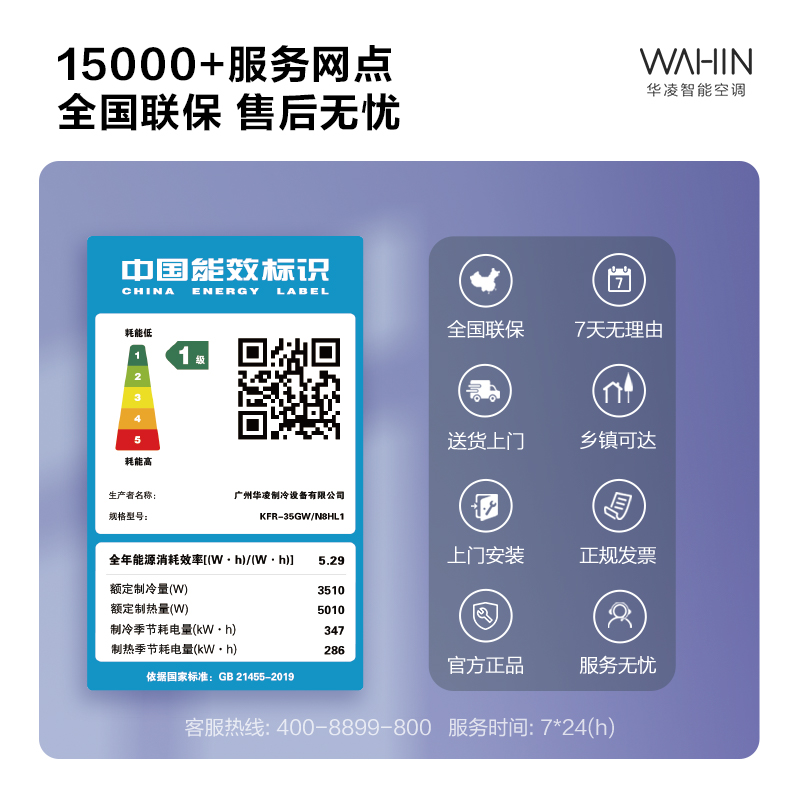 华凌N8HL1壁挂式空调,包括1匹和1.5匹两个规格,主打大导风板功能,出风更广送风更远,同时支持一键防直吹功能;搭载宽温度工作核心器件,支持-32℃低温制热和55℃高温制冷;搭载第四代自清洁技术,深度清洁蒸发器翅片;采用R32冷媒,APF值为5.29,符合新一级能效标准。